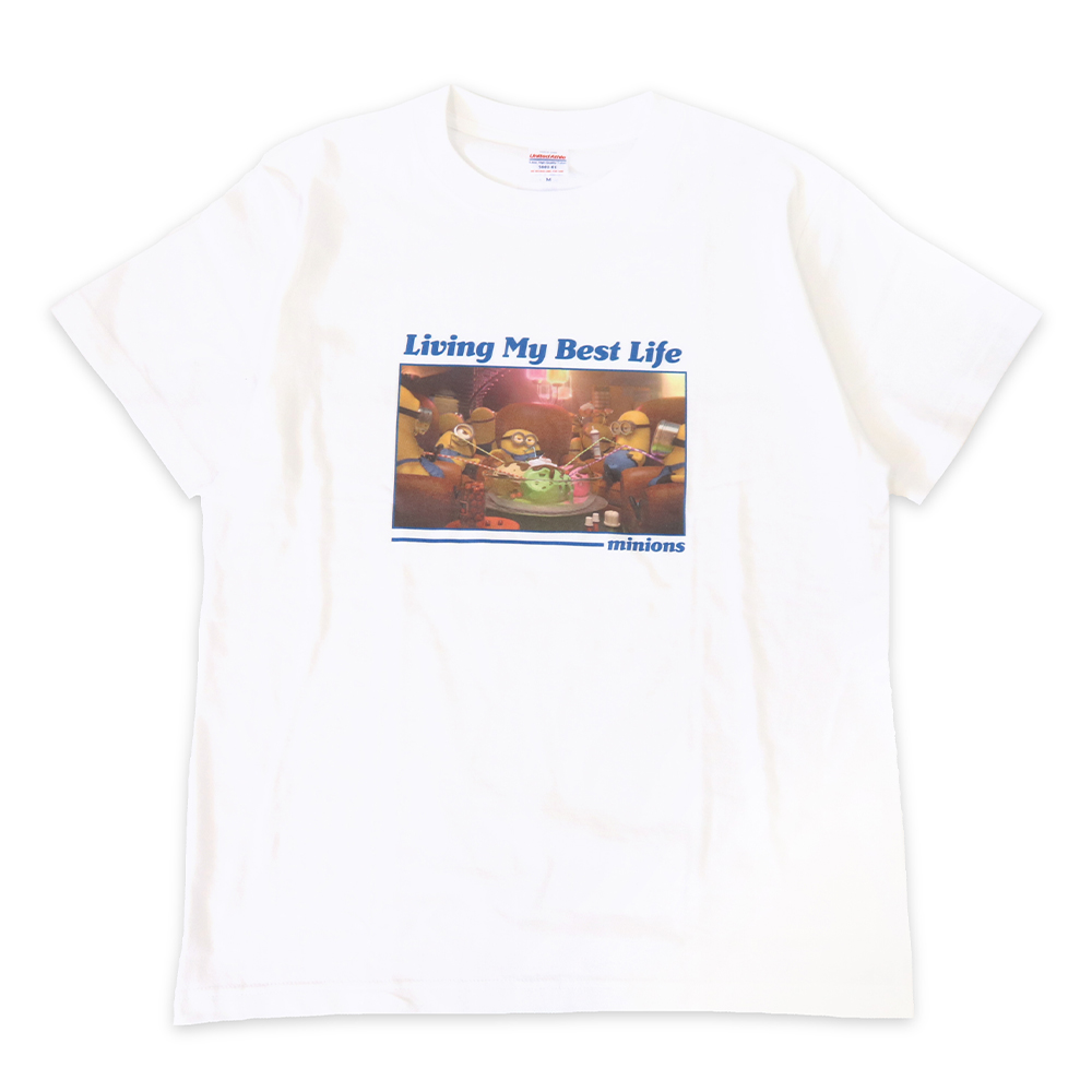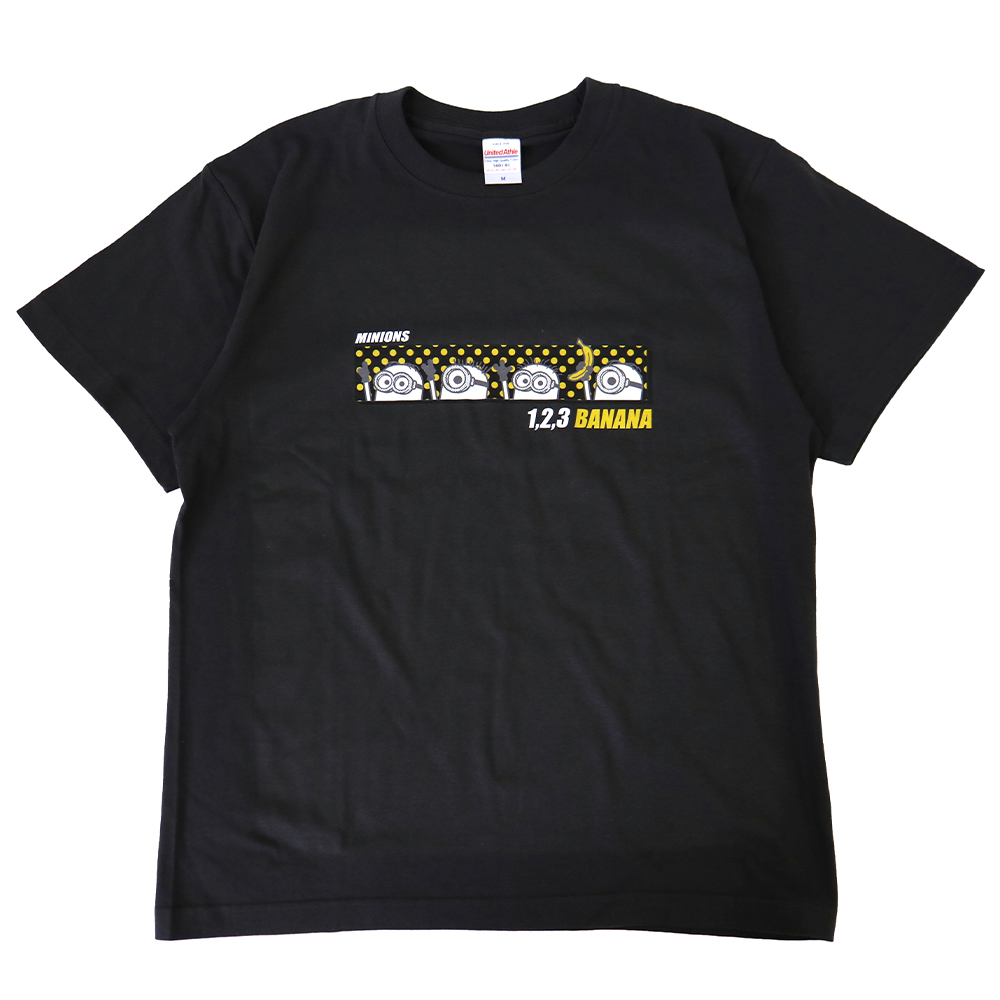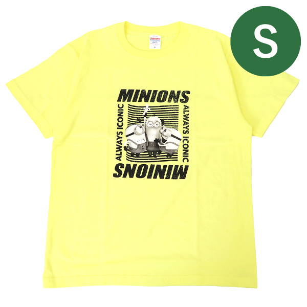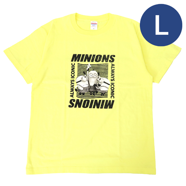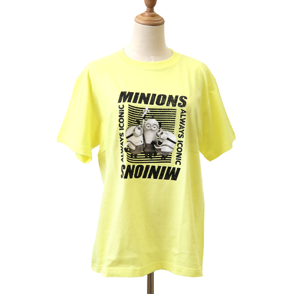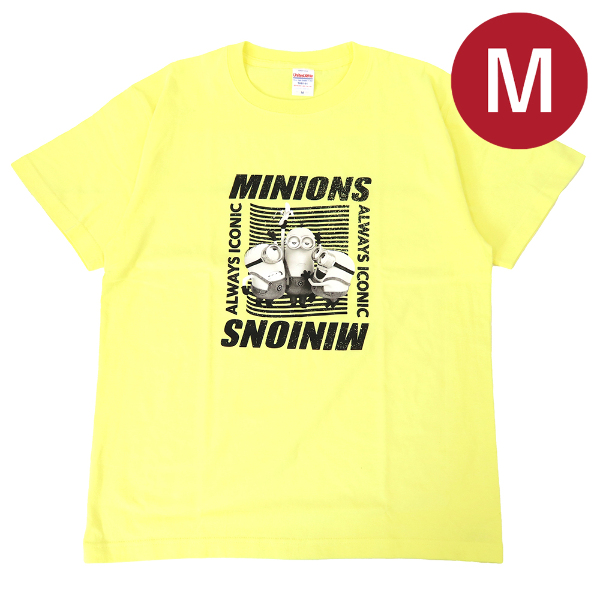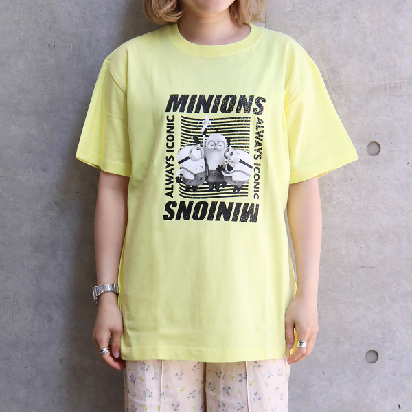ミニオンズの主要キャラクターとロゴを大胆に配置したスクエアグラフィックが存在感抜群のTシャツ。