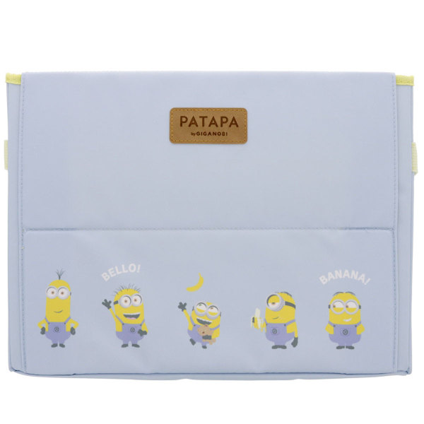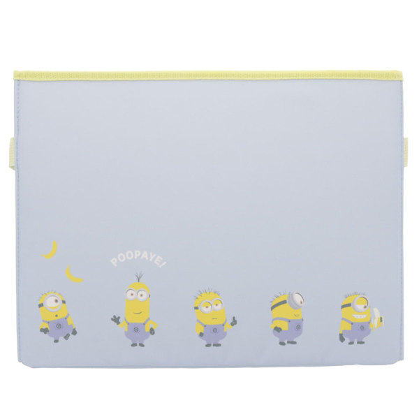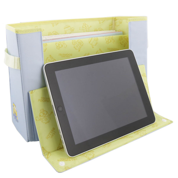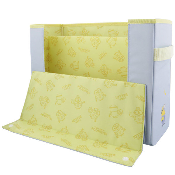 書見台(資料が読みやすくなるように、資料を机に対して一定の角度に保持できるようにした台)にもなる、収納ボックスPATAPA。柄はミニオン。