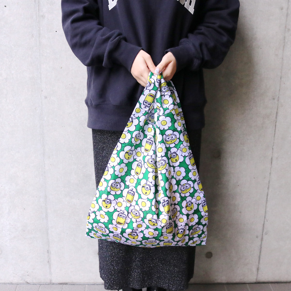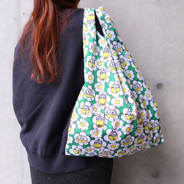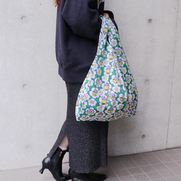 折りたたんで収納できる大き目エコバッグ 総柄なので、中身が見える心配なく使っていただけます。