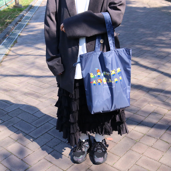 落ち着いたネイビーの色味で中身も透けにくく、スーパーなどのお買い物にはもちろん、ショッピング時のサブバッグとしてもおすすめです◎